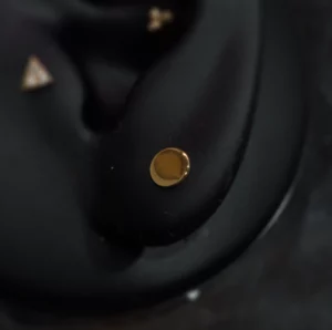 14k gold Flat disc polished stud, pressure fitted – 14g/16/ screw available